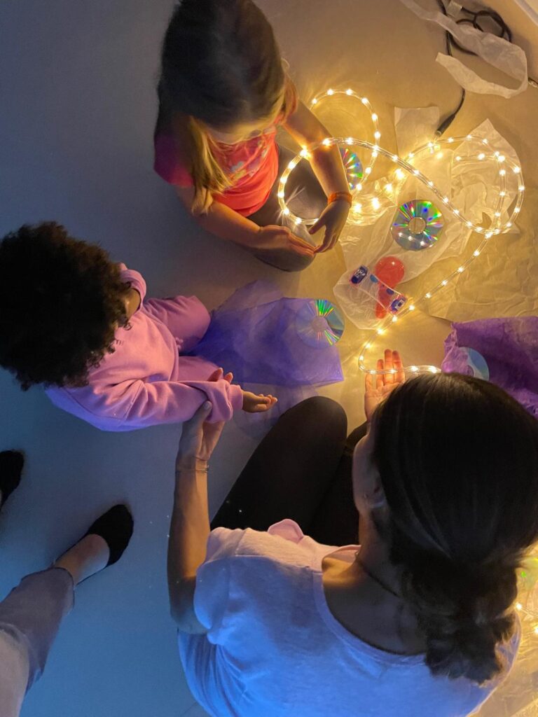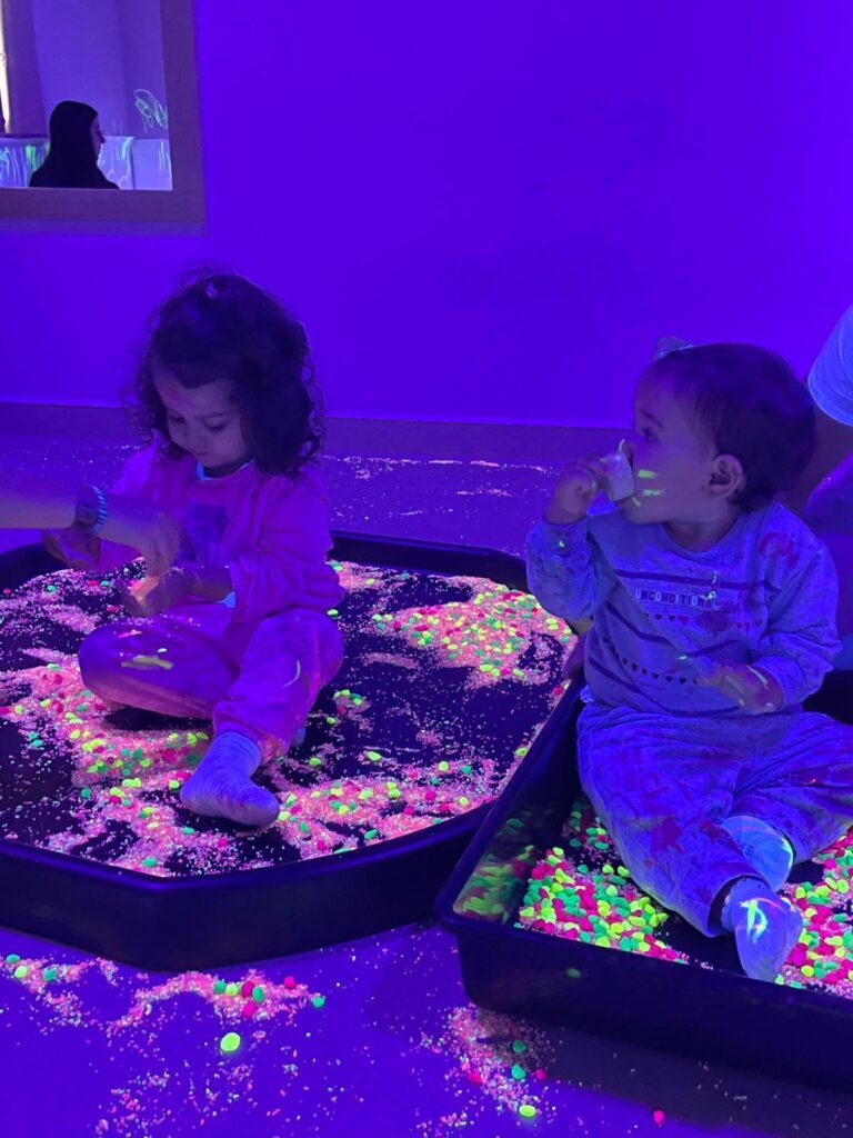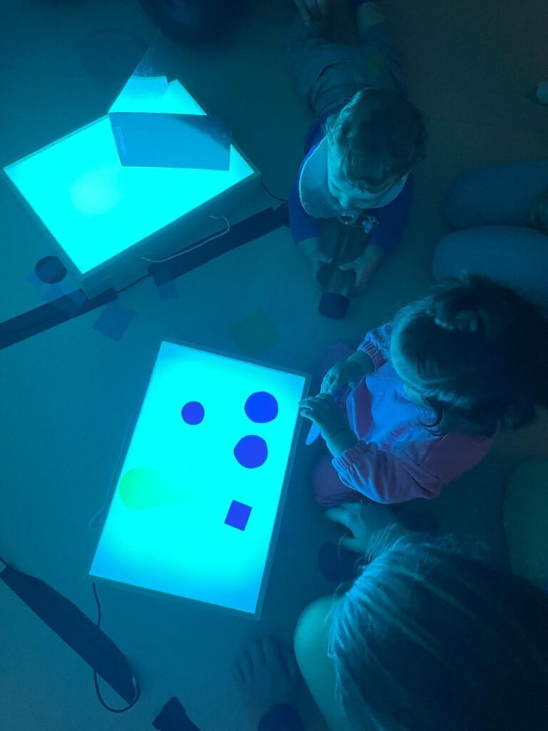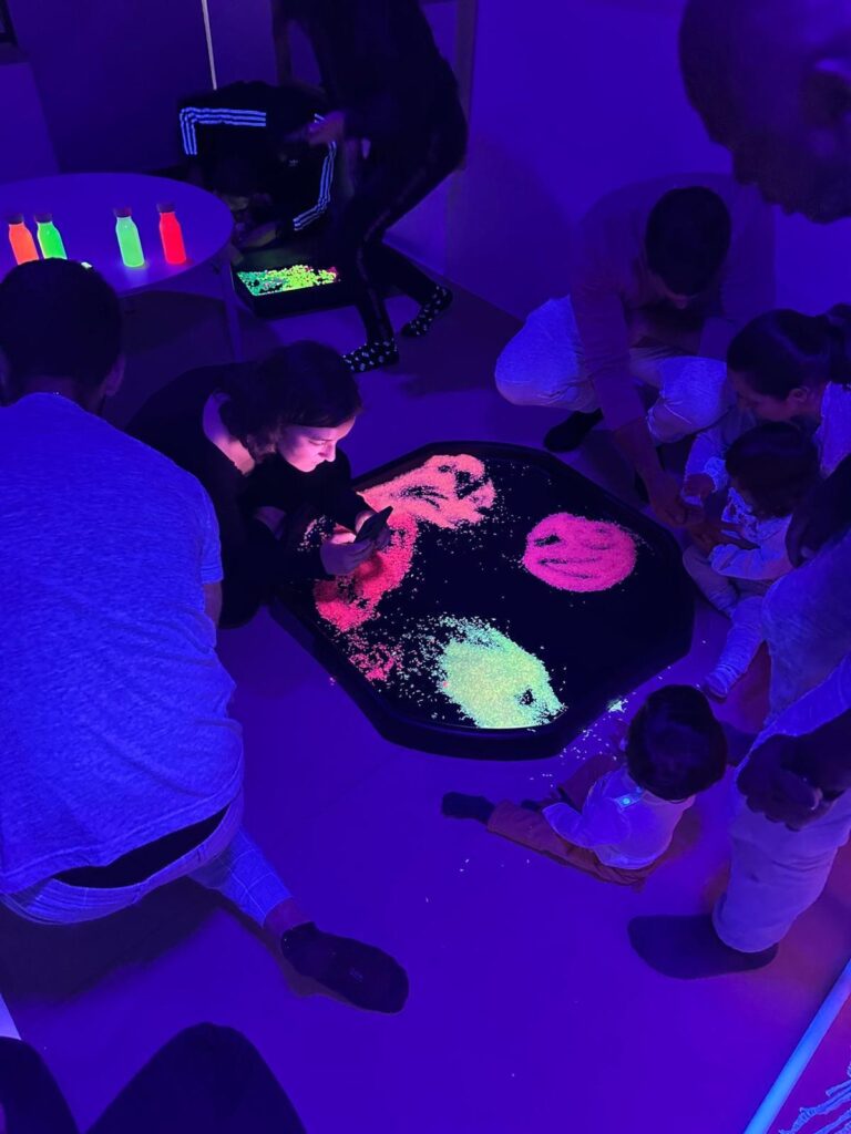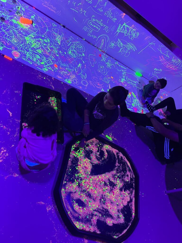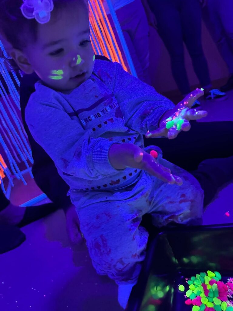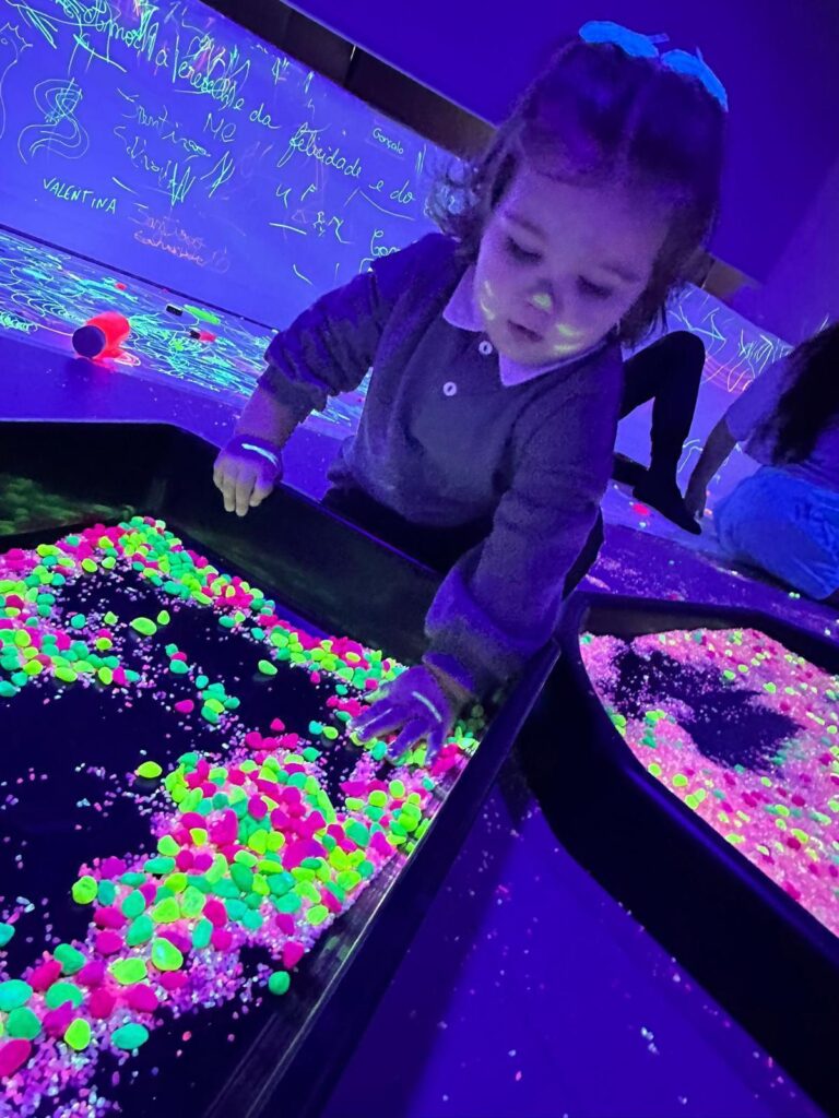 Através de atividades cuidadosamente pensadas — onde cores vibrantes, luzes suaves, formas curiosas e a liberdade de pintar com as próprias mãos se tornaram ferramentas de descoberta — cada criança foi convidada a explorar, sentir e expressar o mundo à sua maneira. Neste espaço mágico, onde não havia certo nem errado, apenas possibilidades, floresceu a expressão livre e autêntica de cada pequeno artista, reforçando o valor do sentir, do criar e do aprender com alegria.